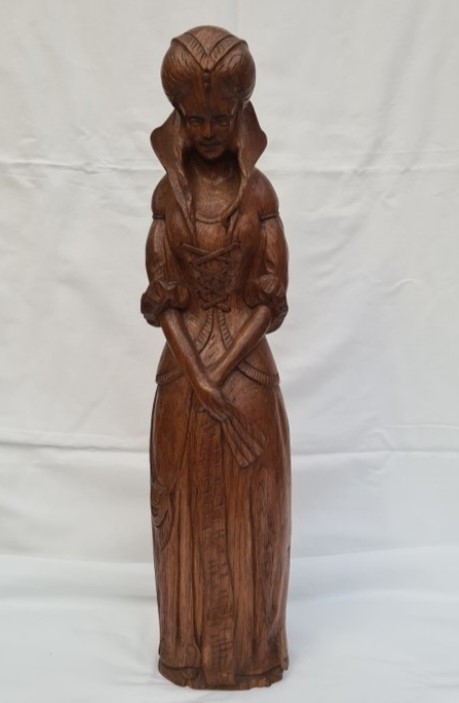 Sculpture féminine en tenue historique (bourguignone) fin XIX eme.
